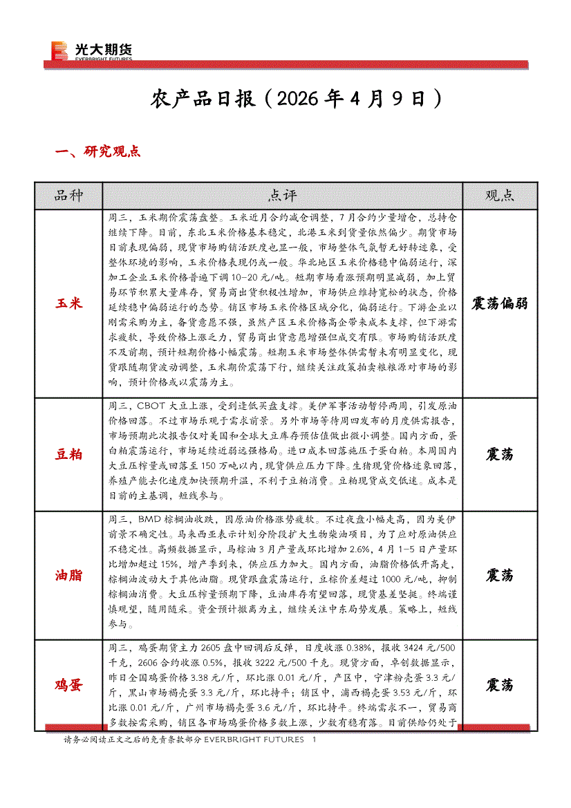 光大期货-农产品日报-260409