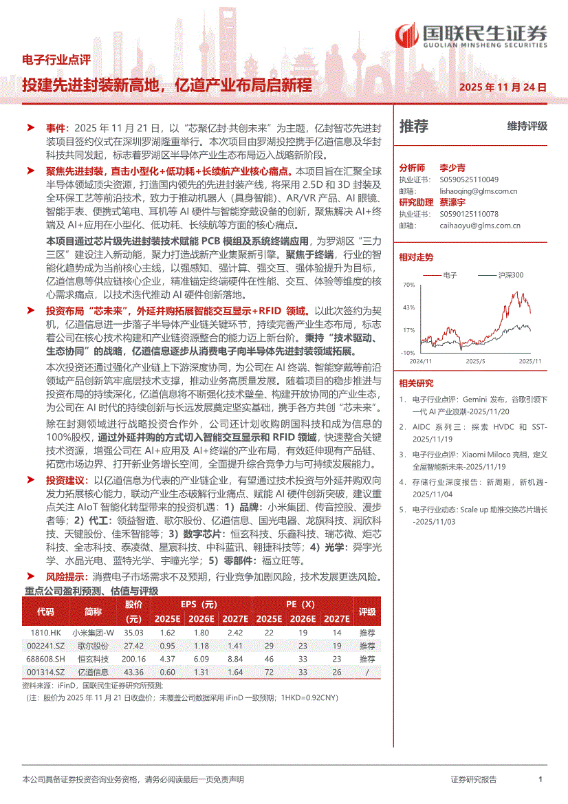 电子行业:国联民生证券-电子行业点评:投建先进封装新高地,亿道产业布局启新程-251124