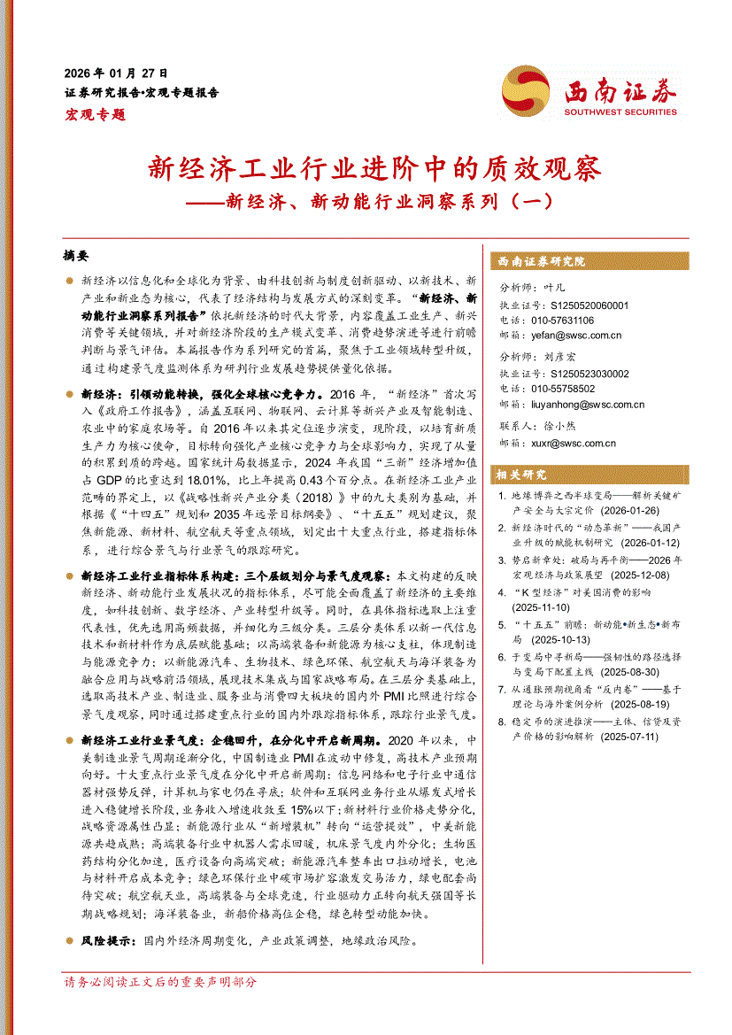 西南证券-新经济、新动能行业洞察系列(一):新经济工业行业进阶中的质效观察-260127