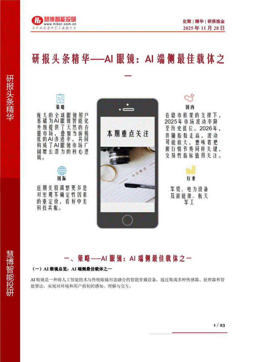 慧博智能投研-慧博研报炼金之研报头条精华:AI眼镜,AI端侧最佳载体之一-251128