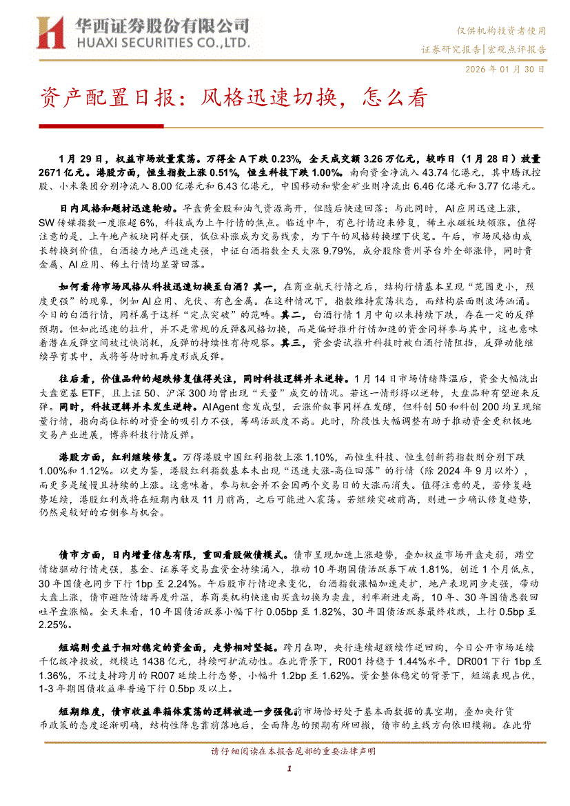 华西证券-资产配置日报:风格迅速切换,怎么看-260130