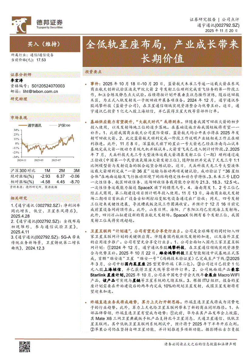 德邦证券-通宇通讯-002792-全低轨星座布局,产业成长带来长期价值-251120