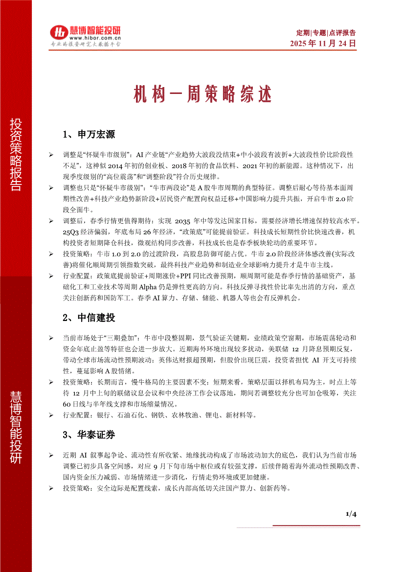 慧博智能投研-机构周策略:机构观点及行业配置-251130