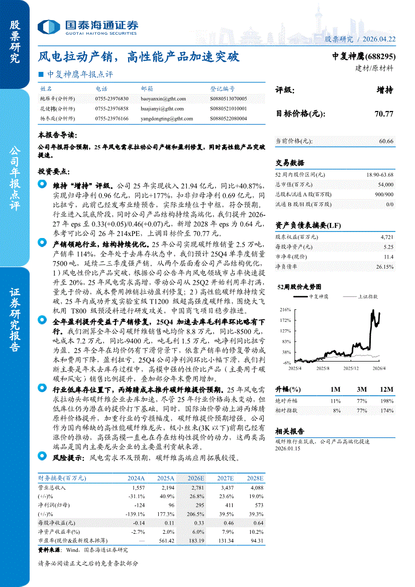 中复神鹰:国泰海通证券-中复神鹰-688295-年报点评:风电拉动产销,高性能产品加速突破-260422