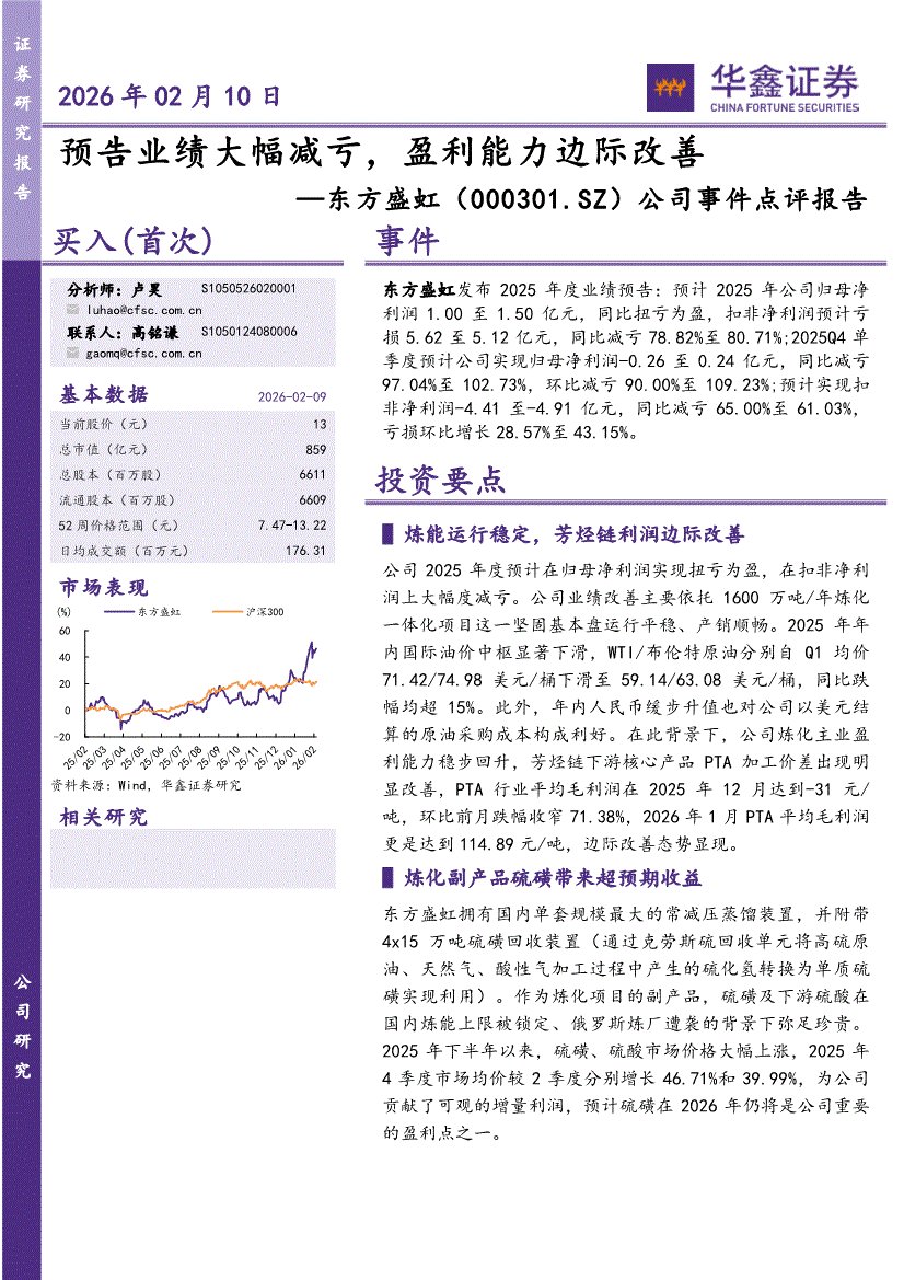 东方盛虹:华鑫证券-东方盛虹-000301-公司事件点评报告:预告业绩大幅减亏,盈利能力边际改善-260210