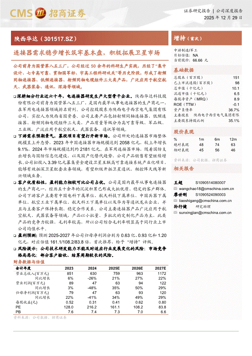 陕西华达:招商证券-陕西华达-301517-连接器需求稳步增长筑牢基本盘,积极拓展卫星市场-251229