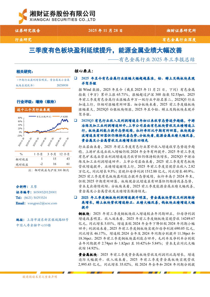 有色金属行业:湘财证券-有色金属行业2025年三季报总结:三季度有色板块盈利延续提升,能源金属业绩大幅改善-251128