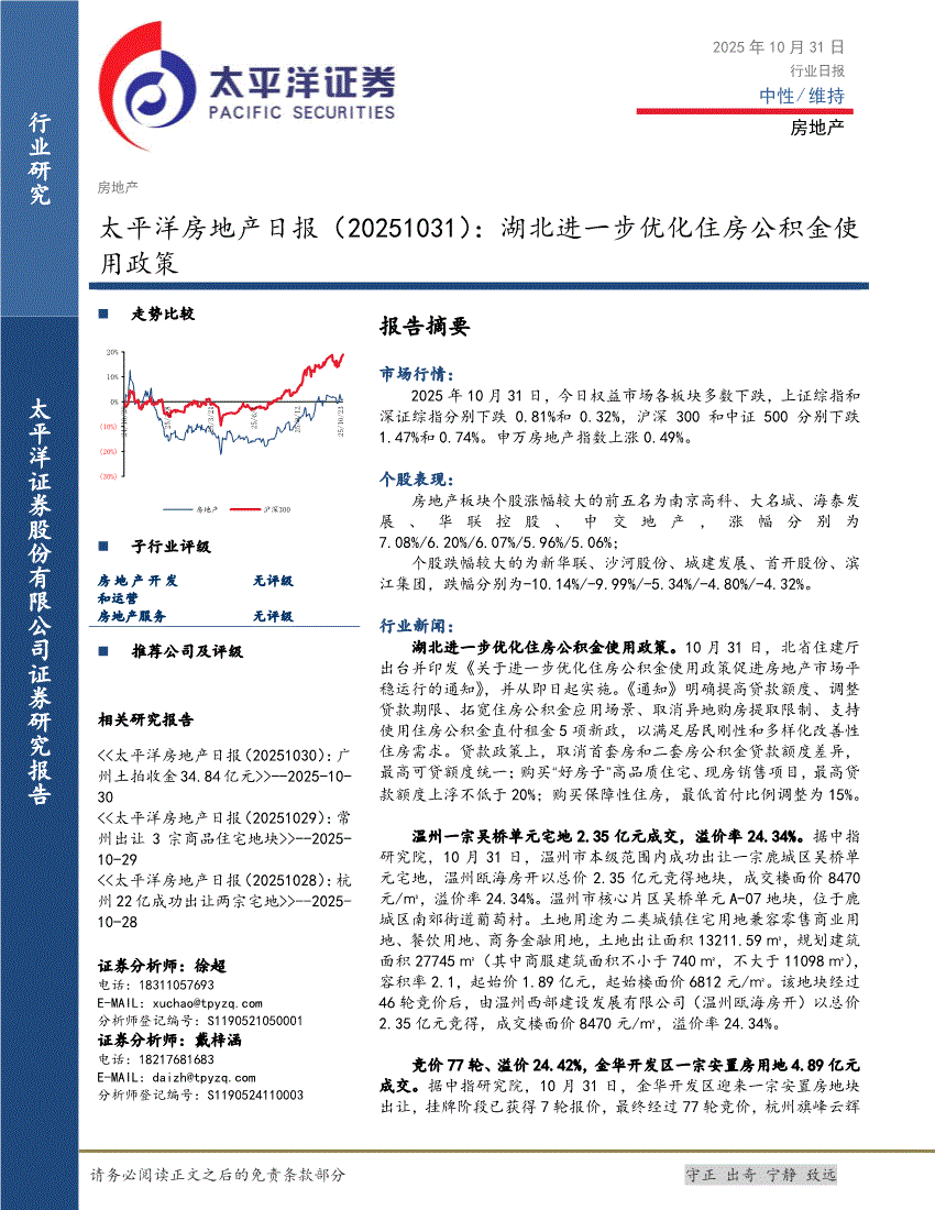 房地产行业:太平洋证券-房地产行业日报:湖北进一步优化住房公积金使用政策-251031