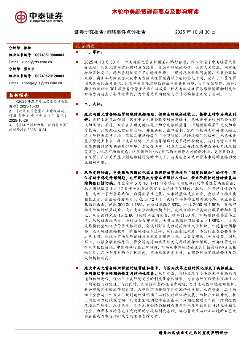 中泰证券-本轮中美经贸磋商要点及影响解读-251030