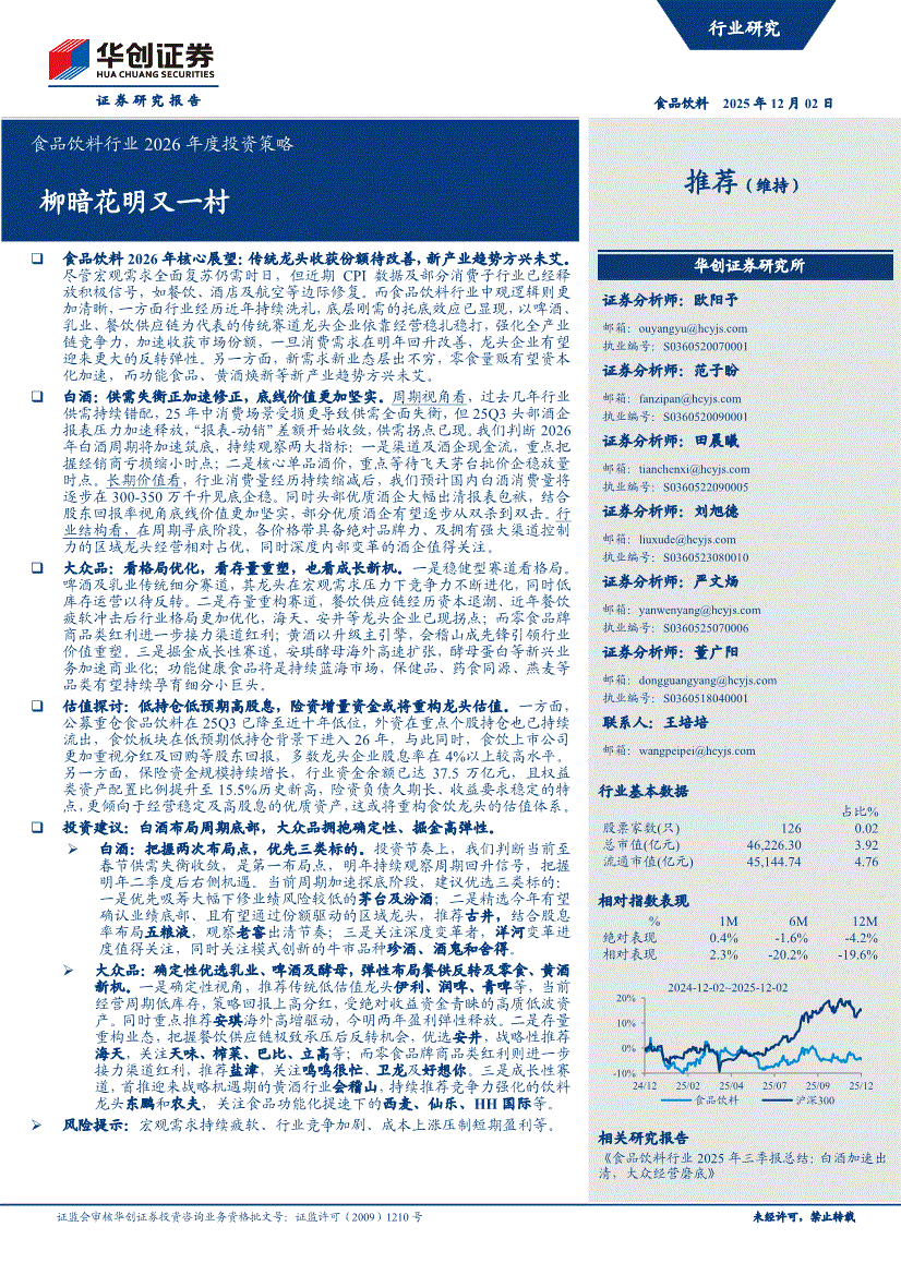 食品饮料行业:华创证券-食品饮料行业2026年度投资策略:柳暗花明又一村-251202