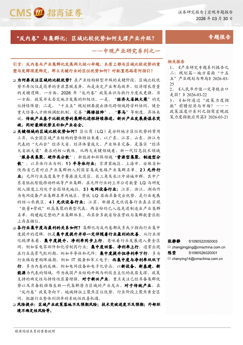 招商证券-中观产业研究系列之一:“反内卷”与集群化,区域比较优势如何支撑产业升级?-260330
