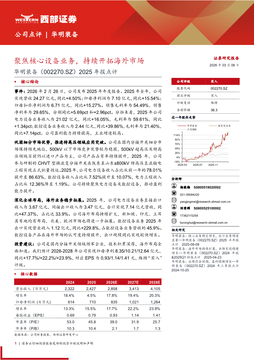 华明装备:西部证券-华明装备-002270-2025年报点评:聚焦核心设备业务,持续开拓海外市场-260306