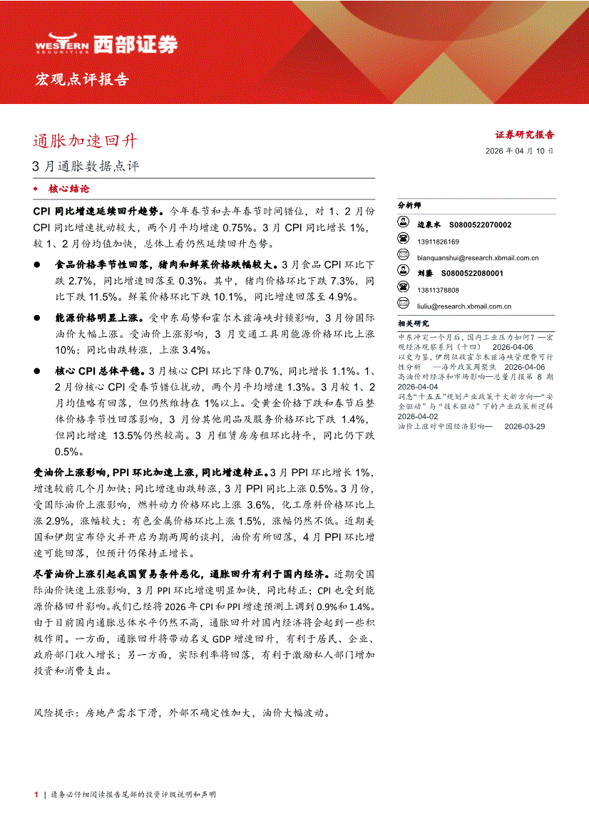西部证券-3月通胀数据点评:通胀加速回升-260410