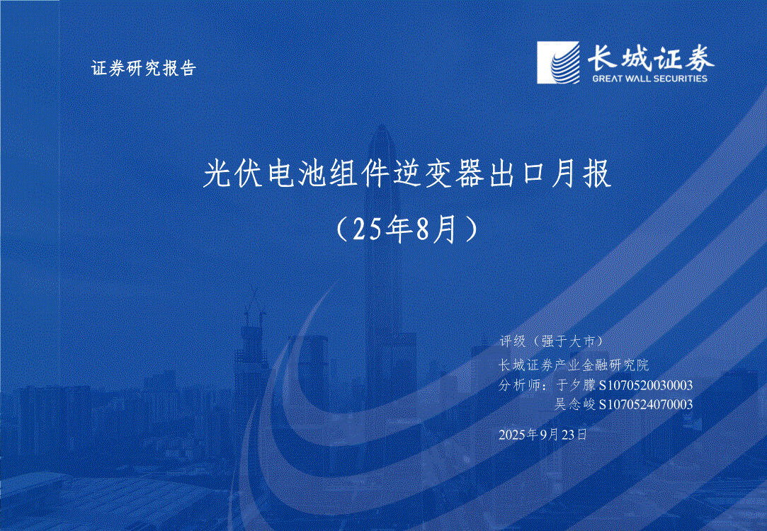 电力设备及新能源行业:长城证券-电力设备及新能源行业:光伏电池组件逆变器出口月报(25年8月)-250923
