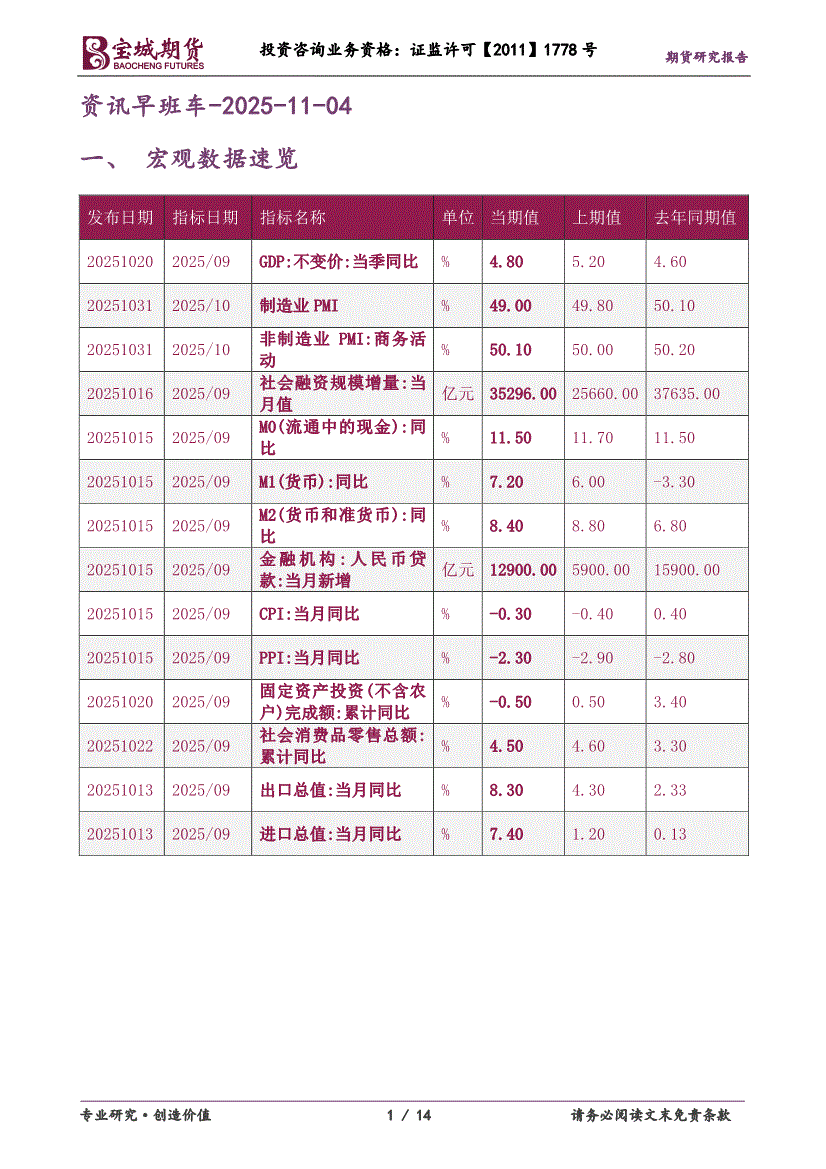 宝城期货-资讯早班车-251104