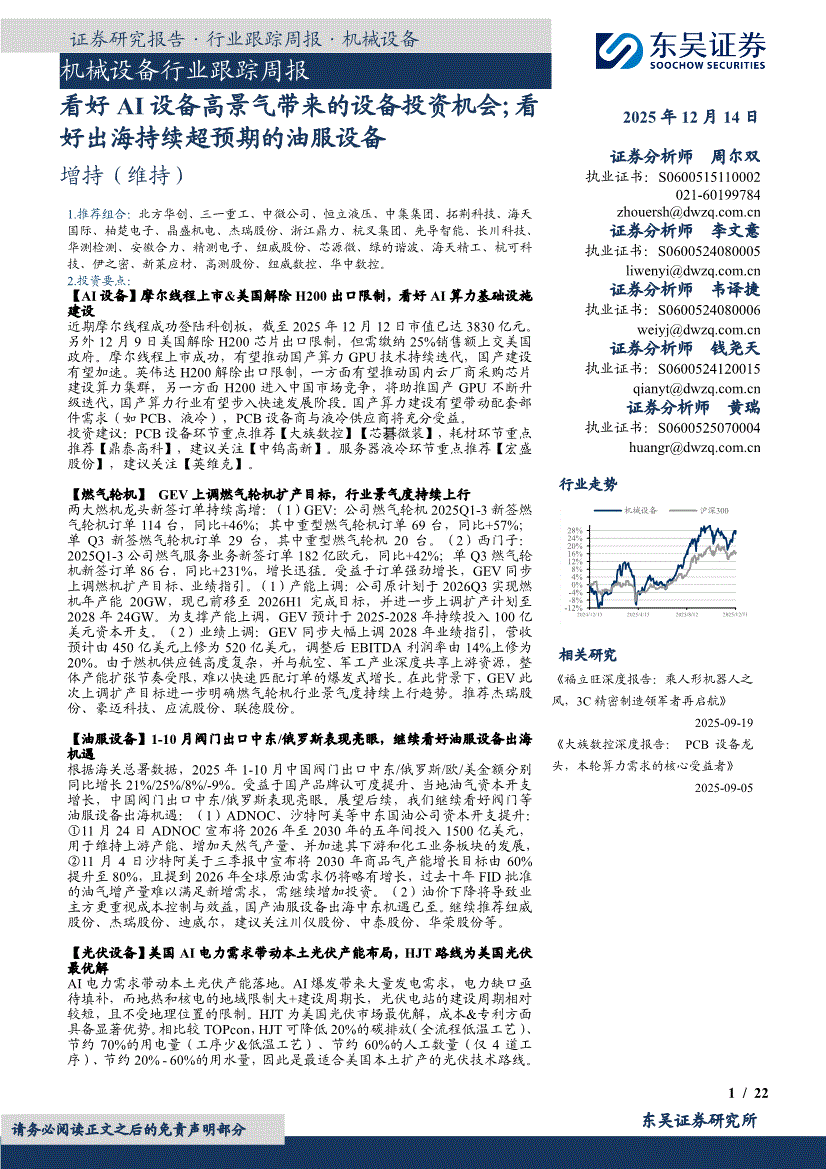 机械设备行业:东吴证券-机械设备行业跟踪周报:看好AI设备高景气带来的设备投资机会;看好出海持续超预期的油服设备-251214