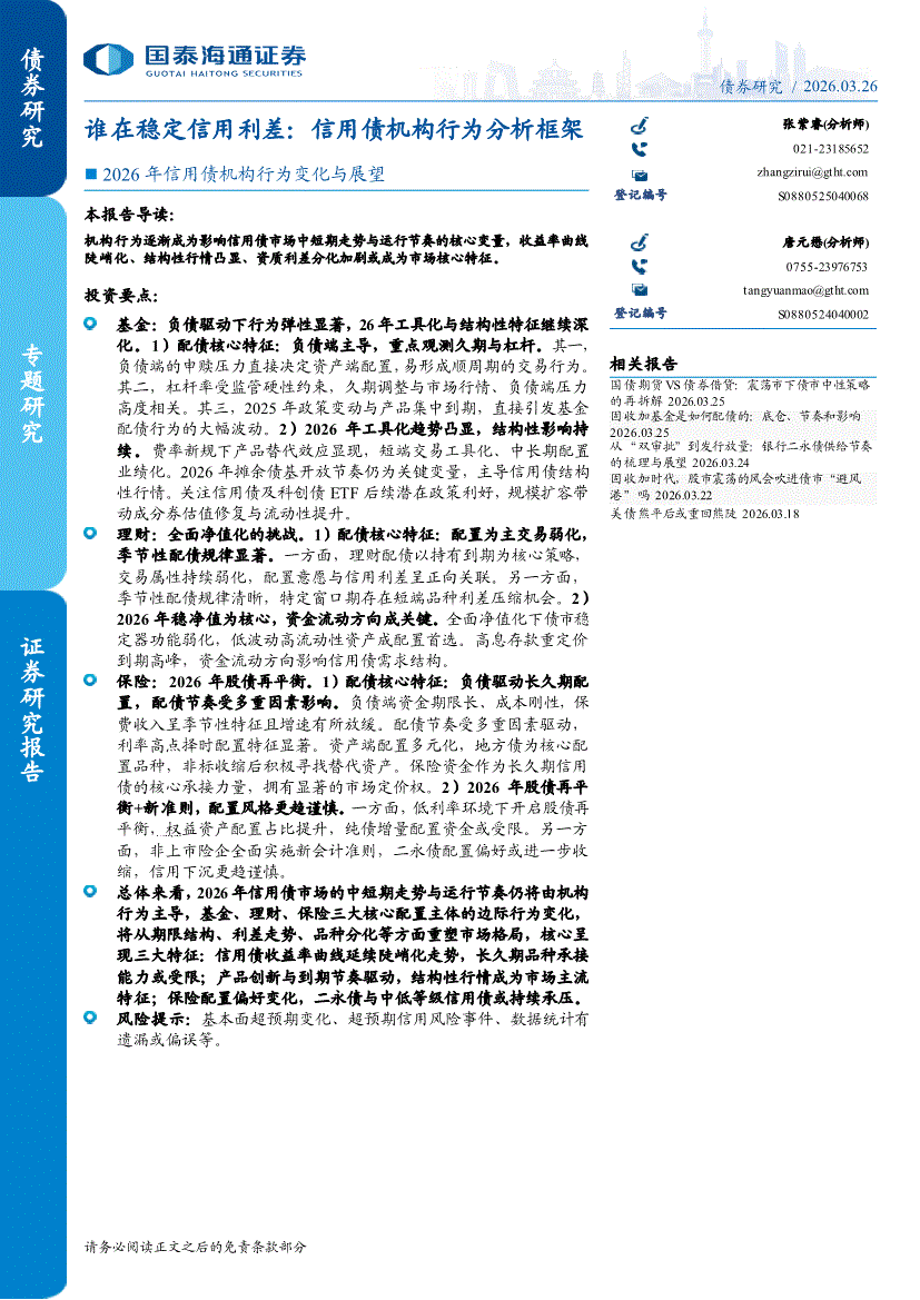 国泰海通证券-2026年信用债机构行为变化与展望:谁在稳定信用利差,信用债机构行为分析框架-260326