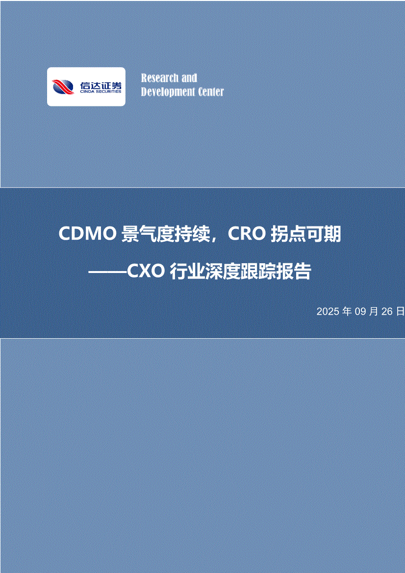 医药生物行业:信达证券-CXO行业深度跟踪报告:CDMO景气度持续,CRO拐点可期-250926