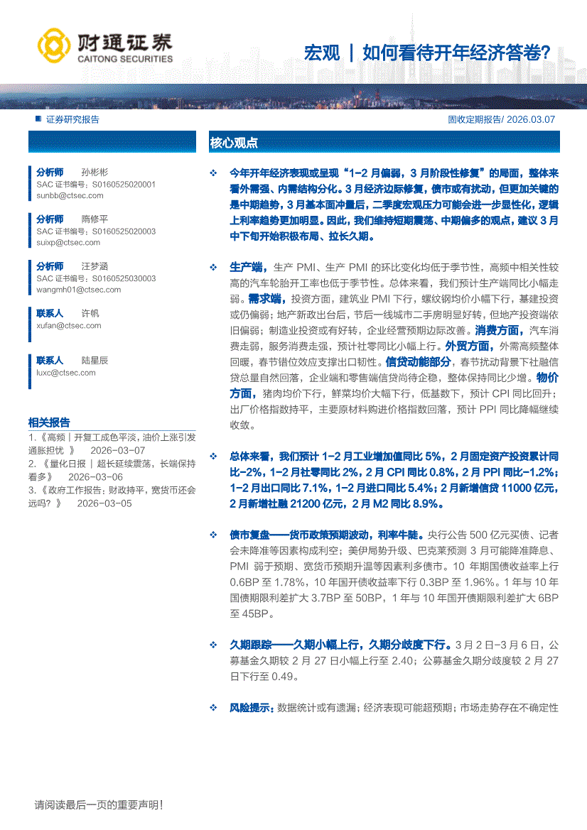 财通证券-宏观|如何看待开年经济答卷?-260307