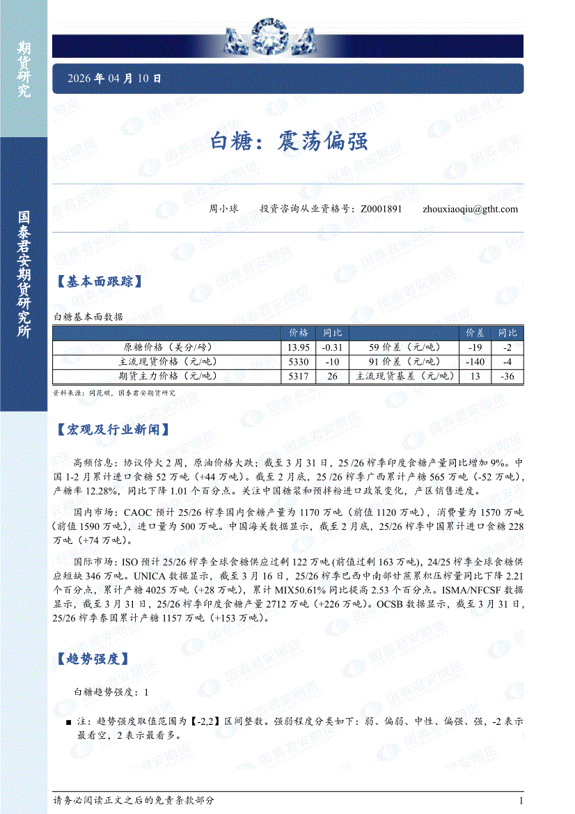 国泰君安期货-白糖:盯紧原油,长期持震荡偏强思路-260406