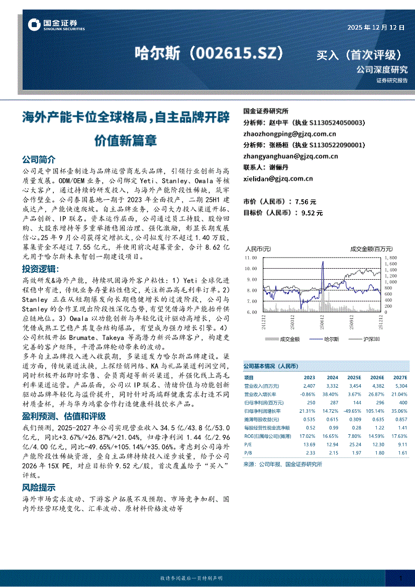哈尔斯:国金证券-哈尔斯-002615-海外产能卡位全球格局,自主品牌开辟价值新篇章-251212