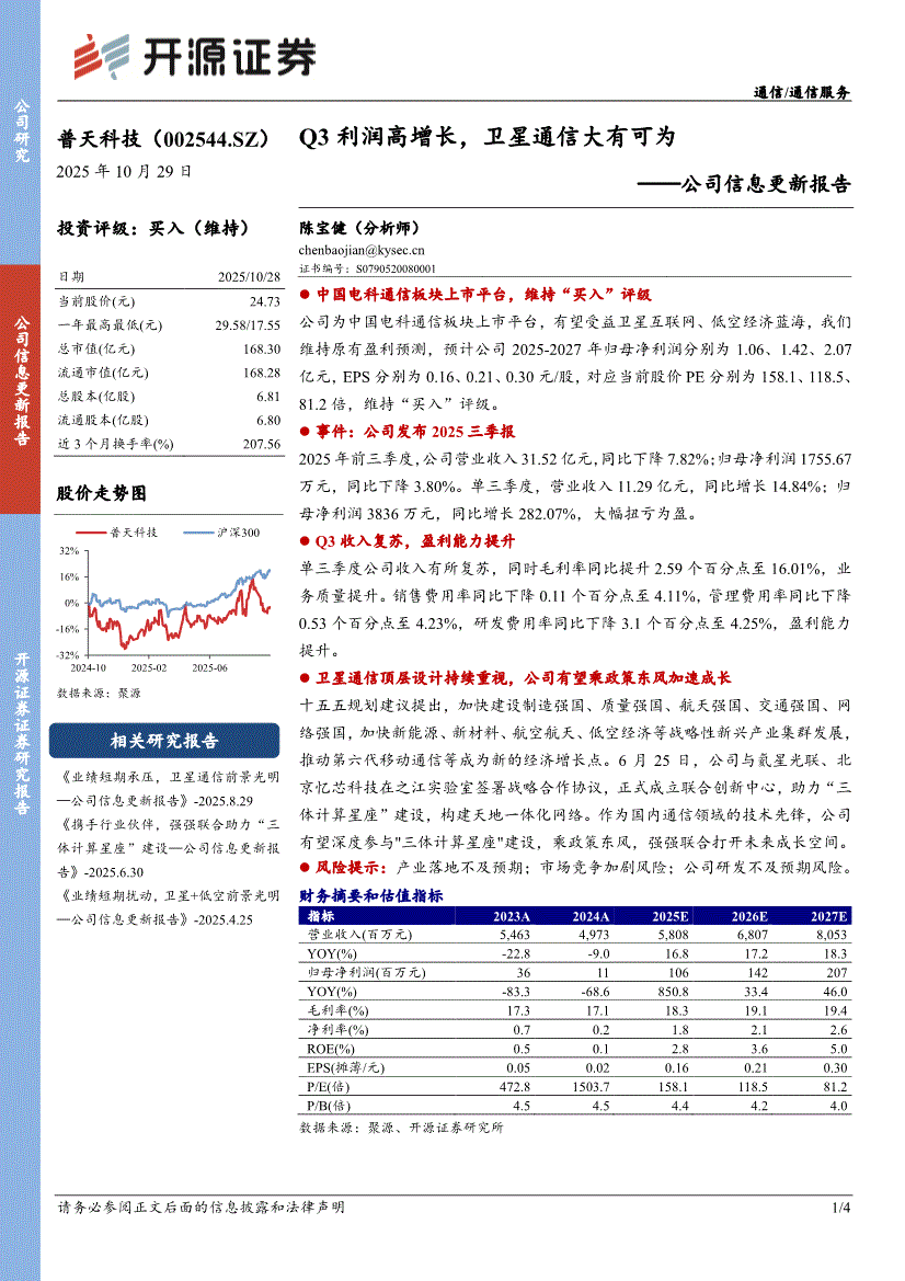 普天科技:开源证券-普天科技-002544-公司信息更新报告:Q3利润高增长,卫星通信大有可为-251029