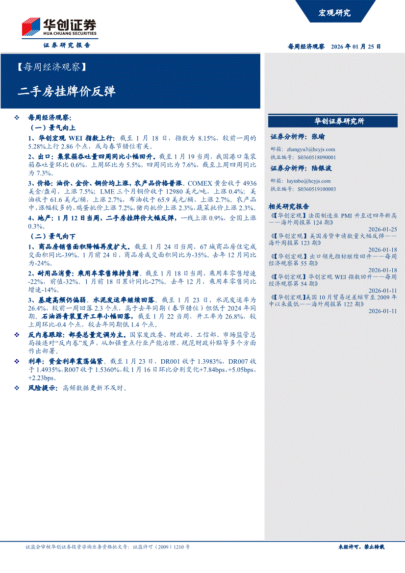 华创证券-【每周经济观察】二手房挂牌价反弹-260125