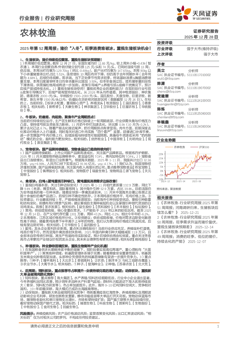 农林牧渔行业:天风证券-农林牧渔行业2025年第52周周报:猪价“入冬”,旺季消费难破冰,重视生猪板块机会!-251228