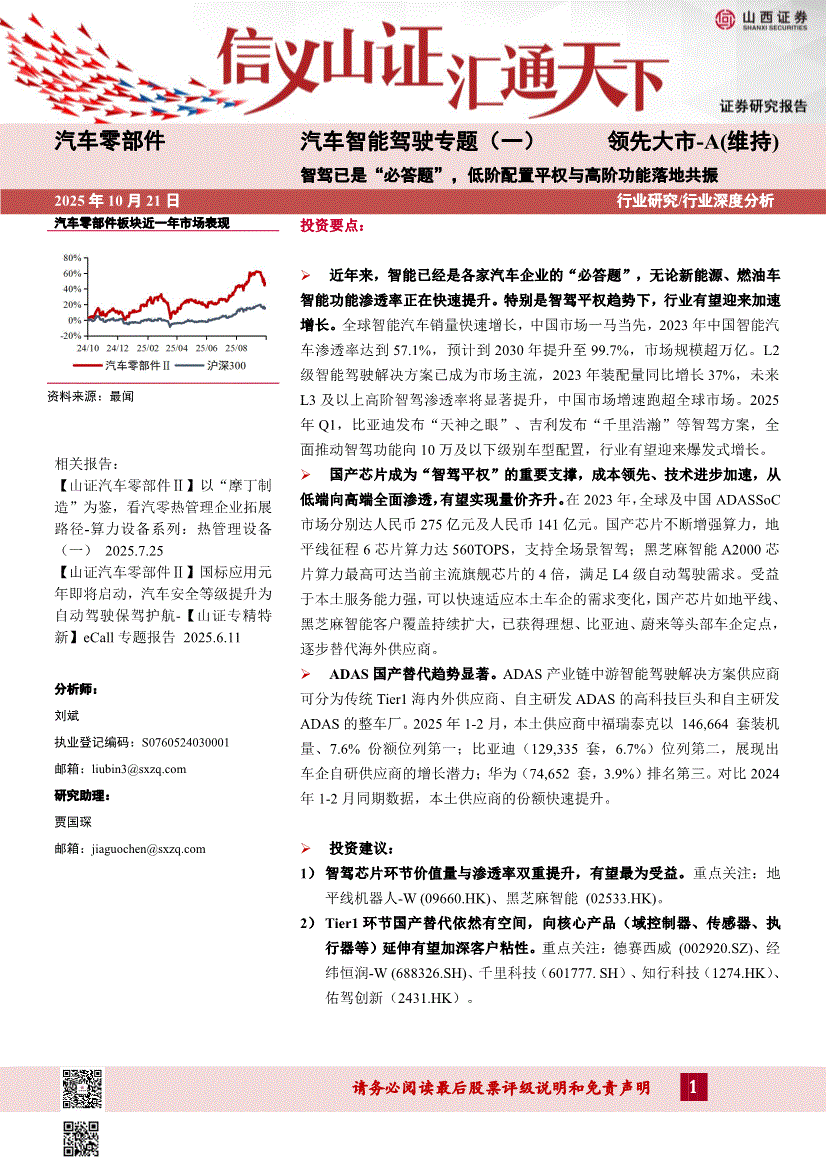 汽车智能驾驶行业:山西证券-汽车智能驾驶行业专题(一):智驾已是“必答题”,低阶配置平权与高阶功能落地共振-251021