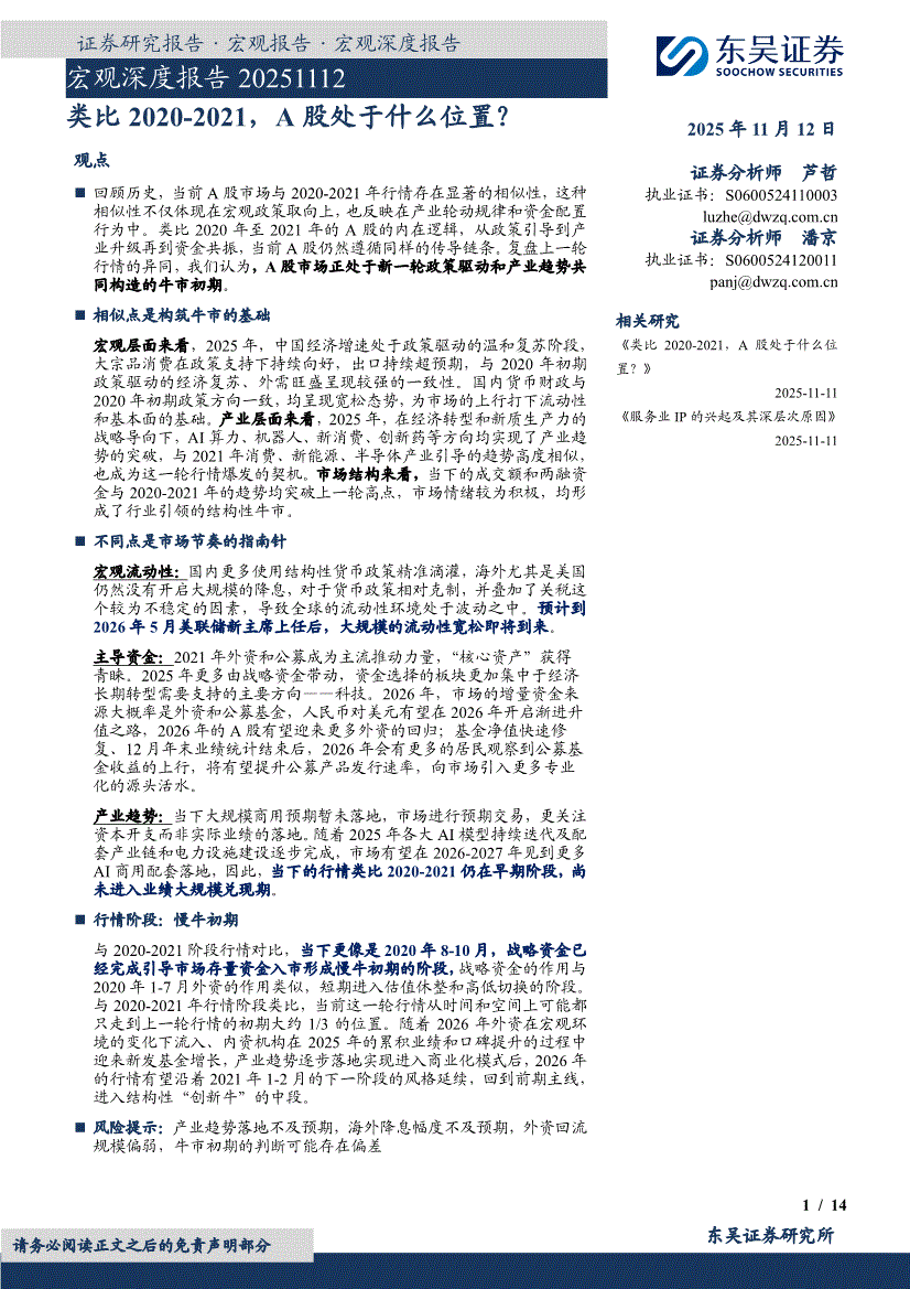 东吴证券-宏观深度报告:类比2020~2021,A股处于什么位置?-251112