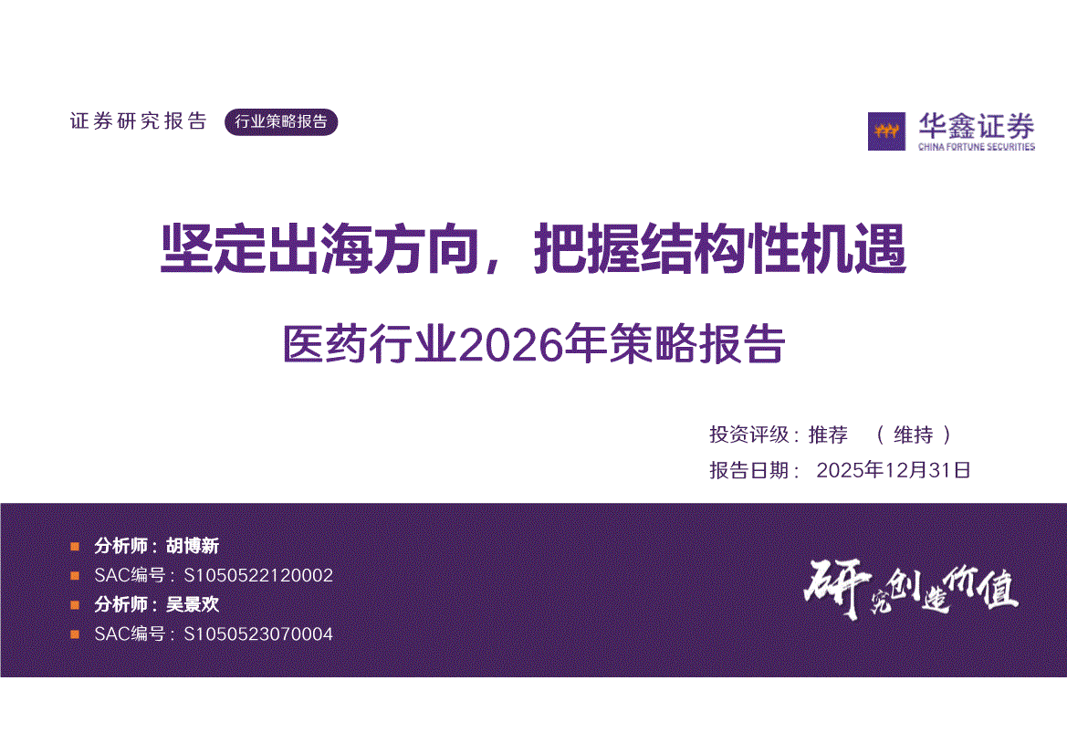 医药行业:华鑫证券-医药行业2026年策略报告:坚定出海方向,把握结构性机遇-251231
