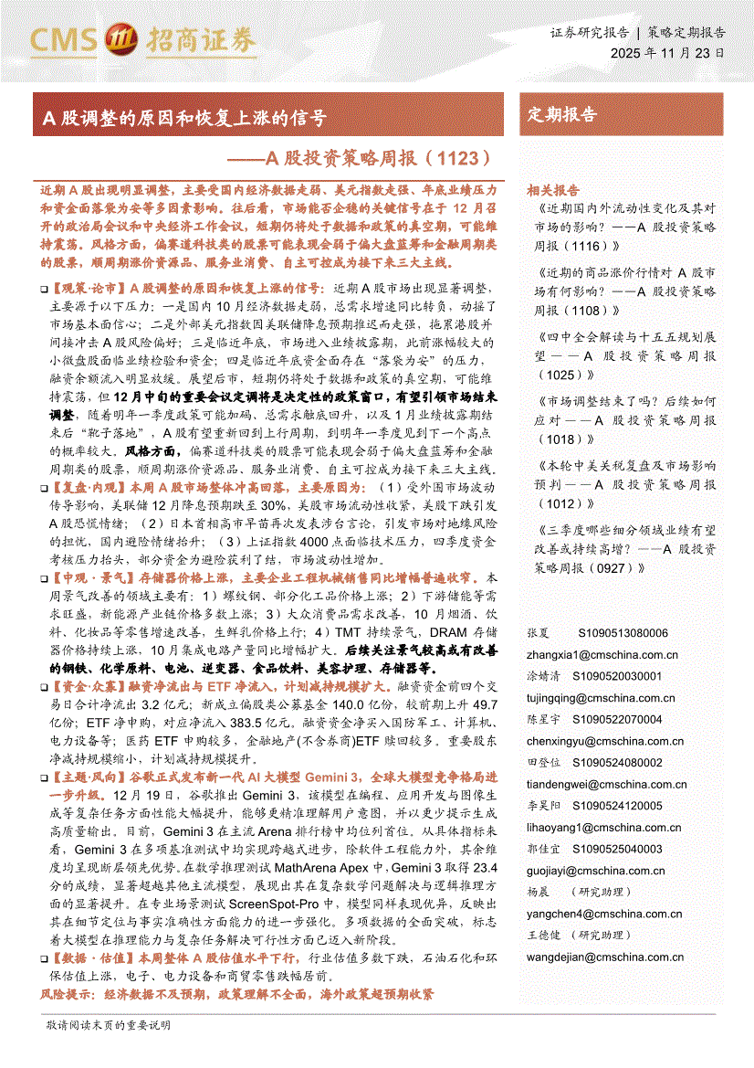 招商证券-A股投资策略周报(1123):A股调整的原因和恢复上涨的信号-251123