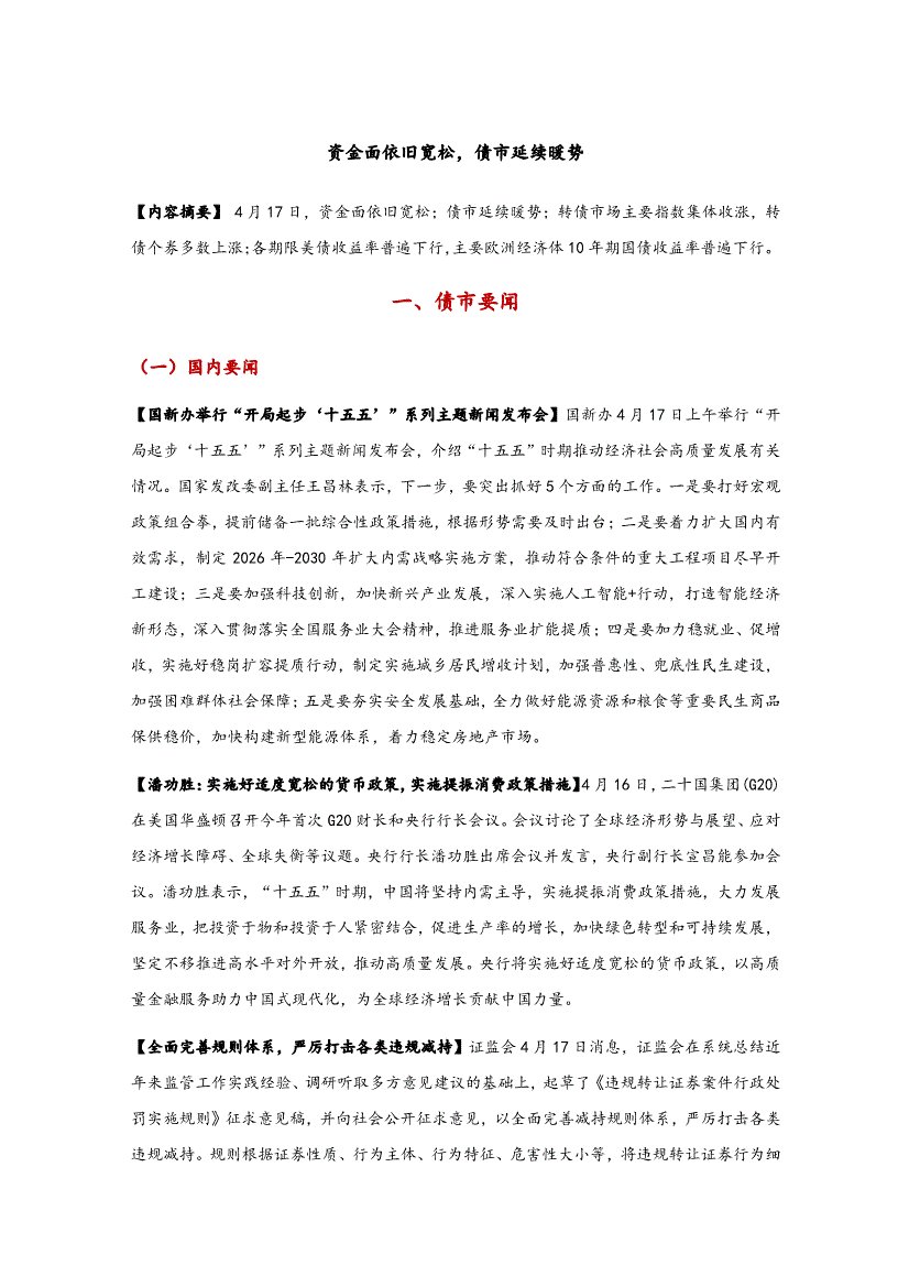 东方金诚-资金面依旧宽松,债市延续暖势-260420