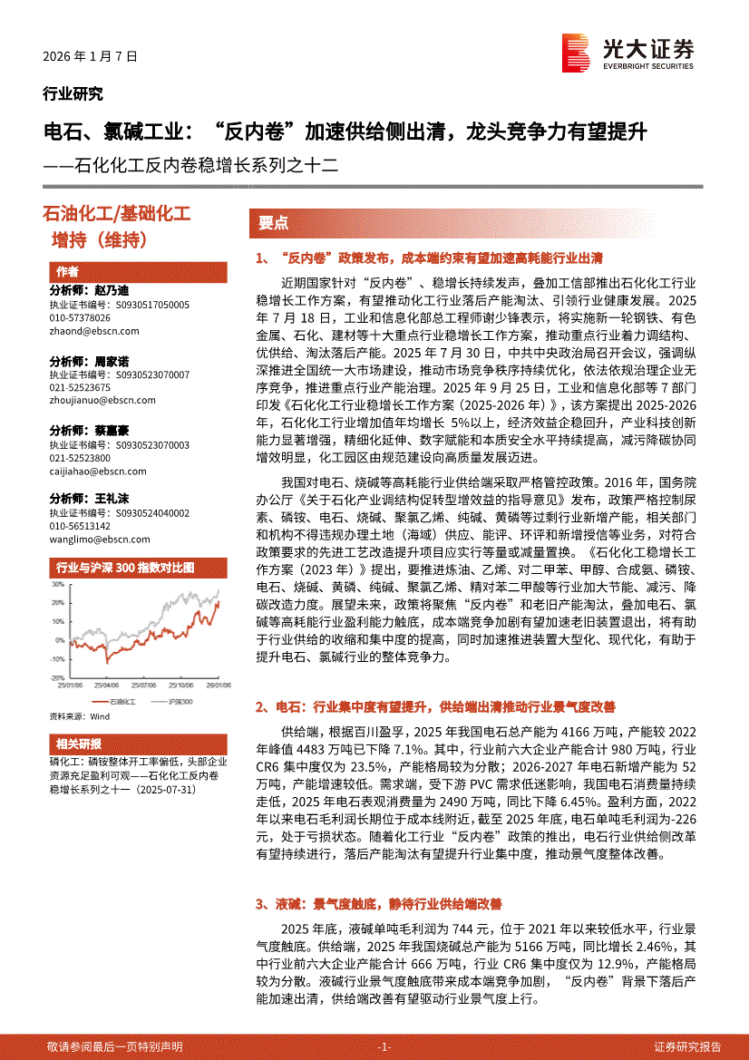 石油化工/基础化工行业:光大证券-石化化工行业反内卷稳增长系列之十二:电石、氯碱工业,“反内卷”加速供给侧出清,龙头竞争力有望提升-260107