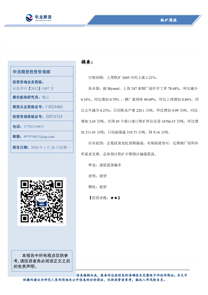 华龙期货-铁矿周报-260126