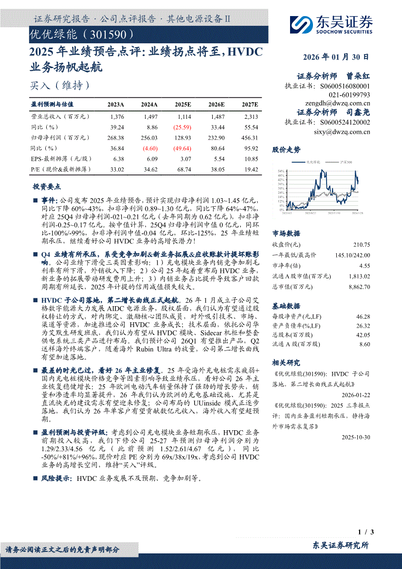 优优绿能:东吴证券-优优绿能-301590-2025年业绩预告点评:业绩拐点将至,HVDC业务扬帆起航-260130