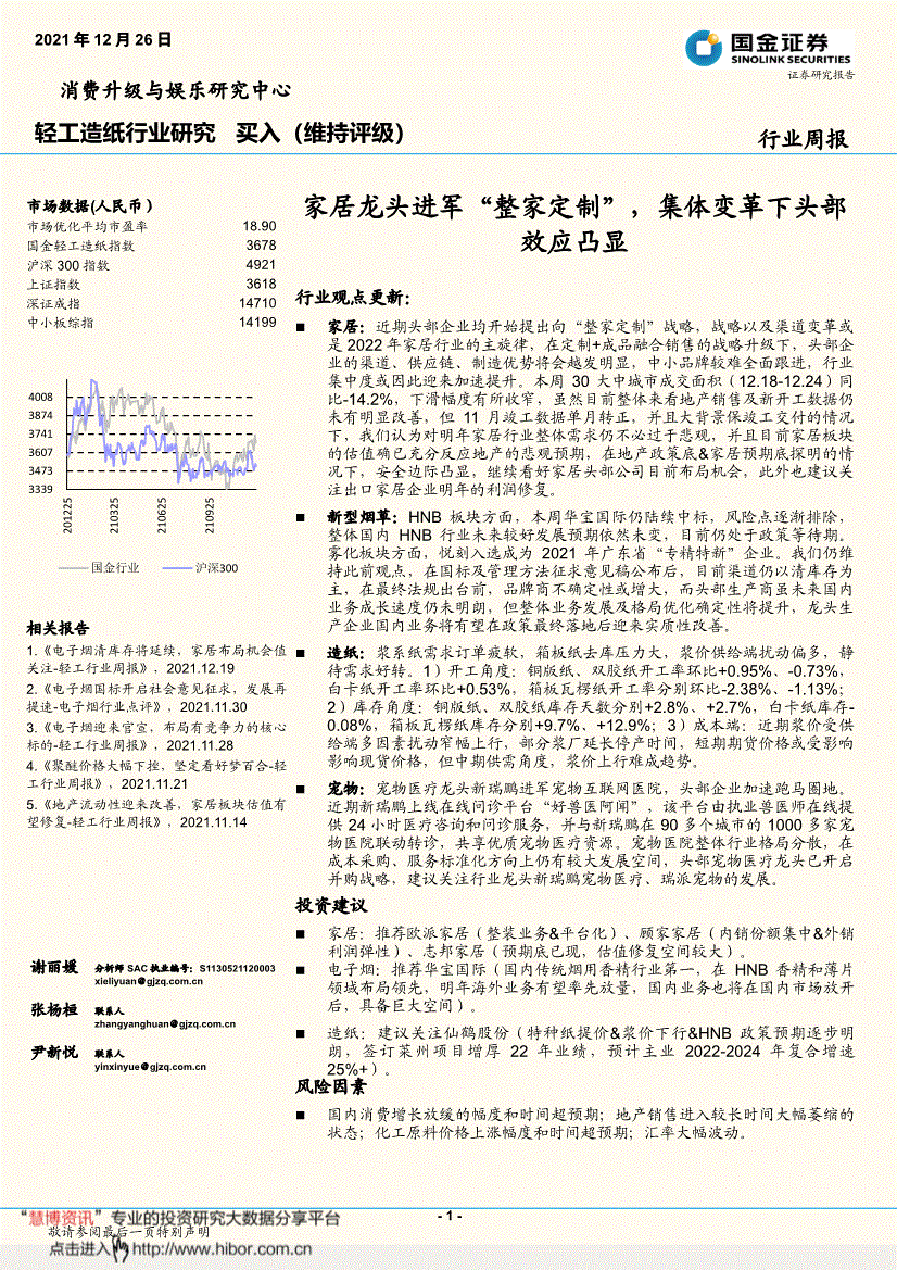 轻工造纸行业:国金证券-轻工造纸行业周报:家居龙头进军“整家定制”,集体变革下头部效应凸显-211226