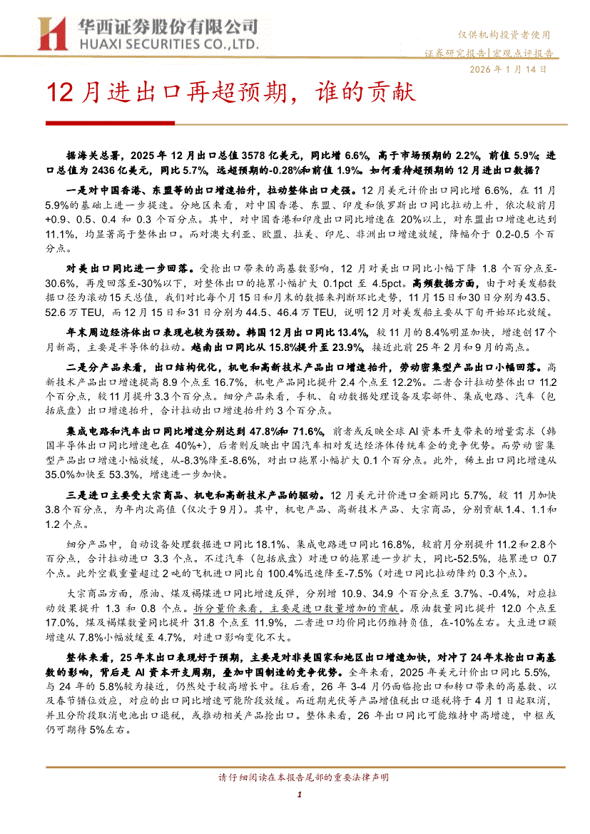 华西证券-12月进出口再超预期,谁的贡献-260114