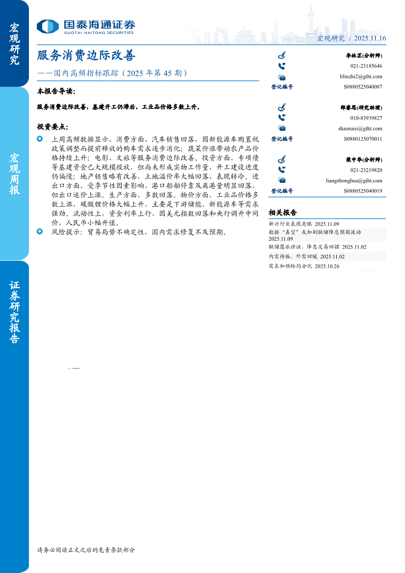 国泰海通证券-国内高频指标跟踪(2025年第45期):服务消费边际改善-251116