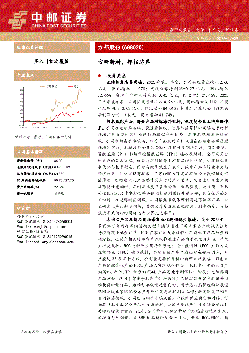 方邦股份:中邮证券-方邦股份-688020-方研新材,邦拓芯界-260209