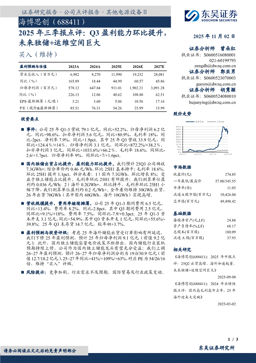 海博思创:东吴证券-海博思创-688411-2025年三季报点评:Q3盈利能力环比提升,未来独储+运维空间巨大-251102