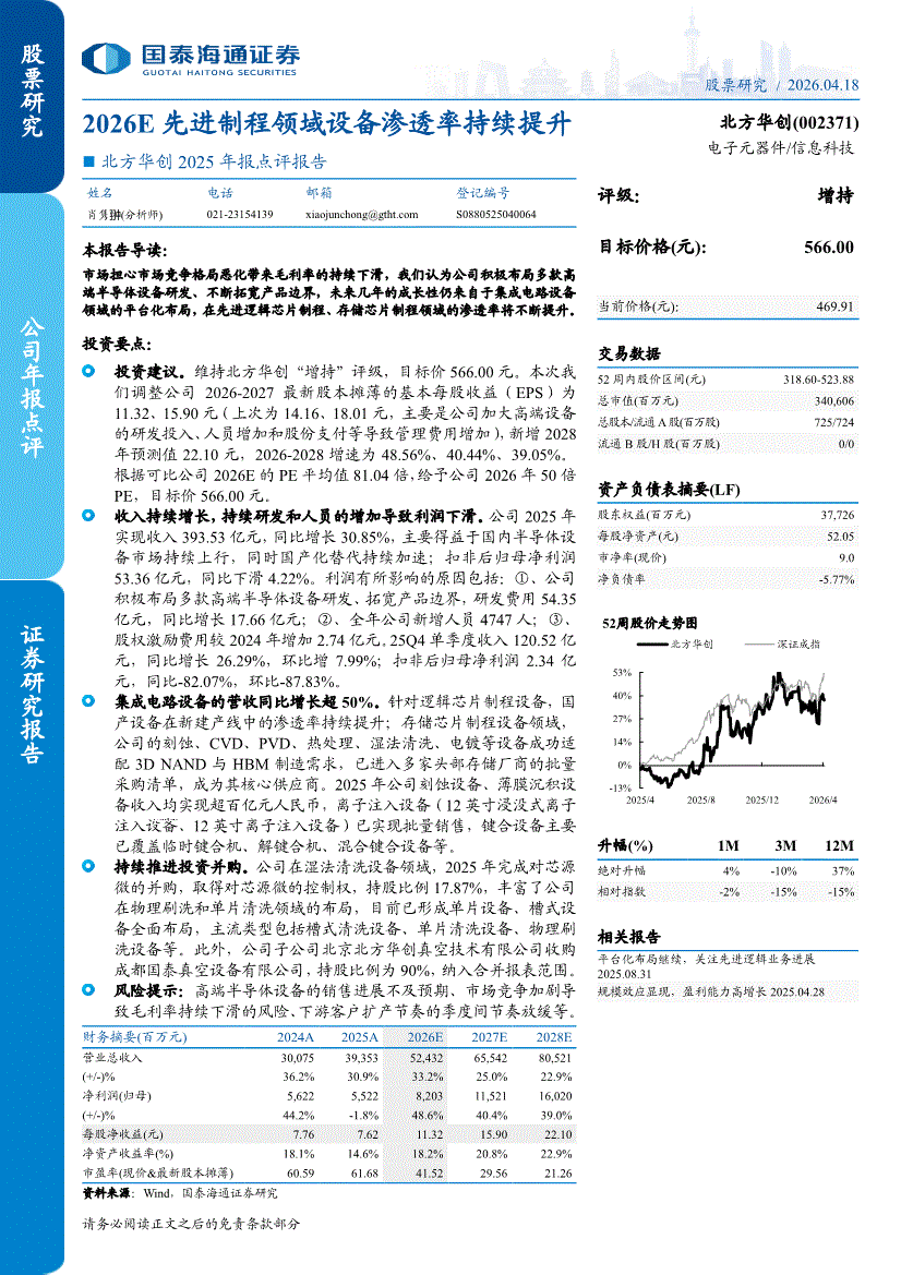 北方华创:国泰海通证券-北方华创-002371-2025年报点评报告:2026E先进制程领域设备渗透率持续提升-260418