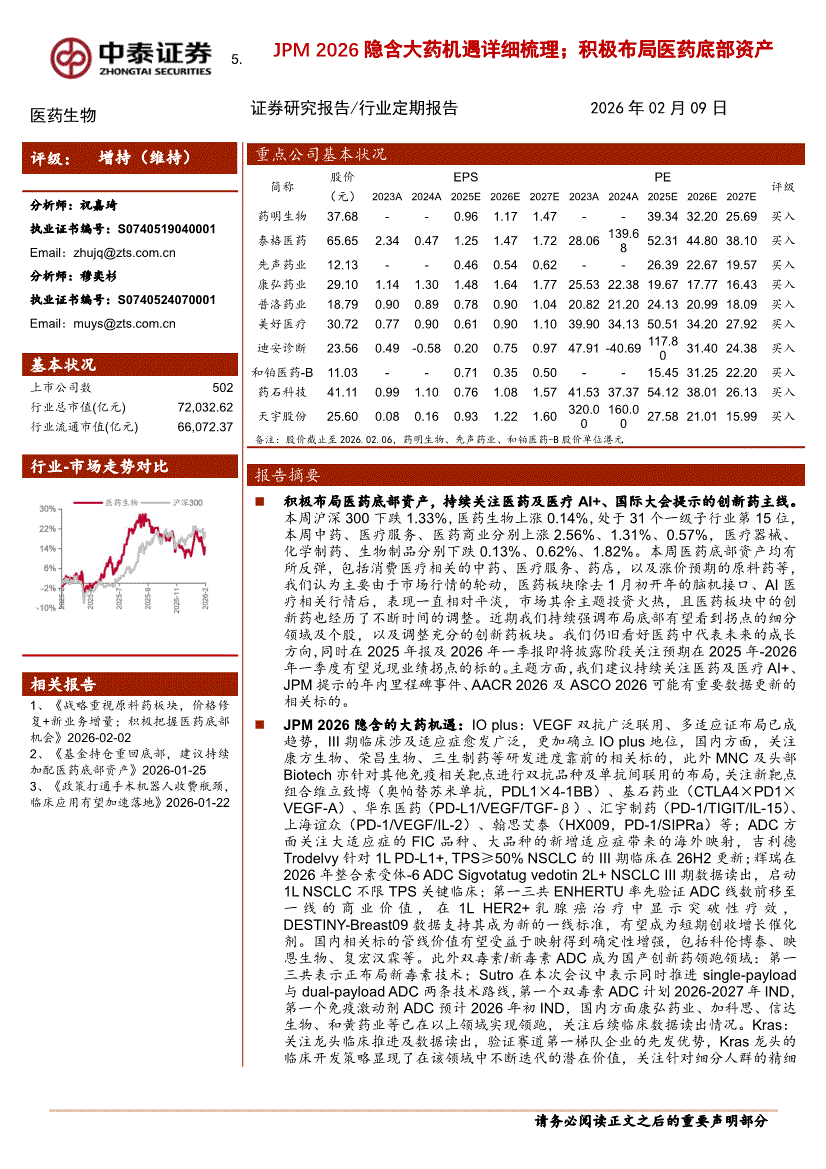 医药生物行业:中泰证券-医药生物行业:JPM 2026隐含大药机遇详细梳理;积极布局医药底部资产-260209