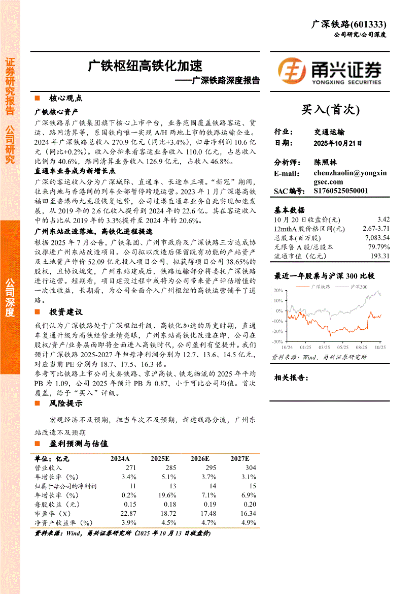广深铁路:甬兴证券-广深铁路-601333-深度报告:广铁枢纽高铁化加速-251021