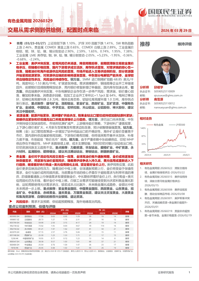 有色金属行业:国联民生证券-有色金属行业周报:交易从需求侧到供给侧,配置时点来临-260329