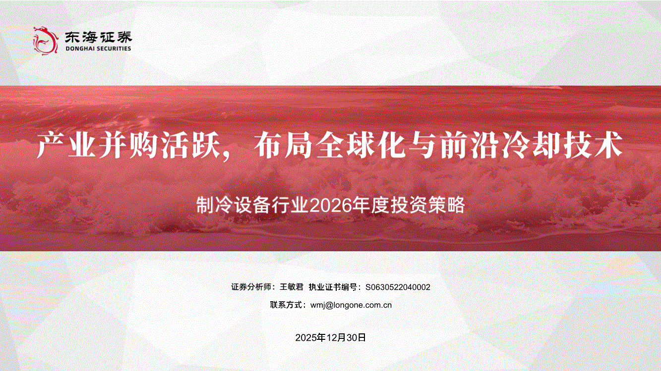 制冷设备行业:东海证券-制冷设备行业2026年度投资策略:产业并购活跃,布局全球化与前沿冷却技术-251230