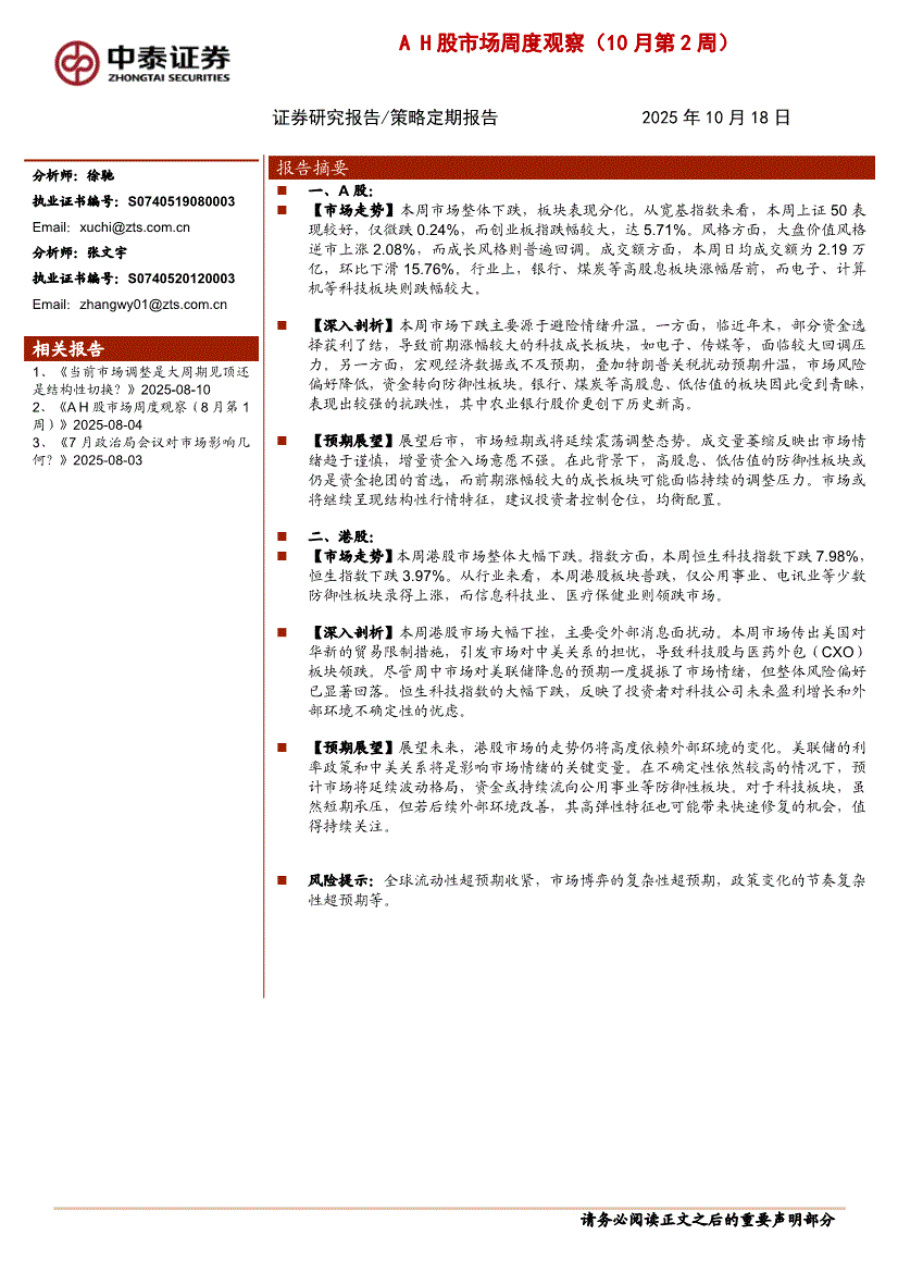 中泰证券-AH股市场周度观察(10月第2周)-251018