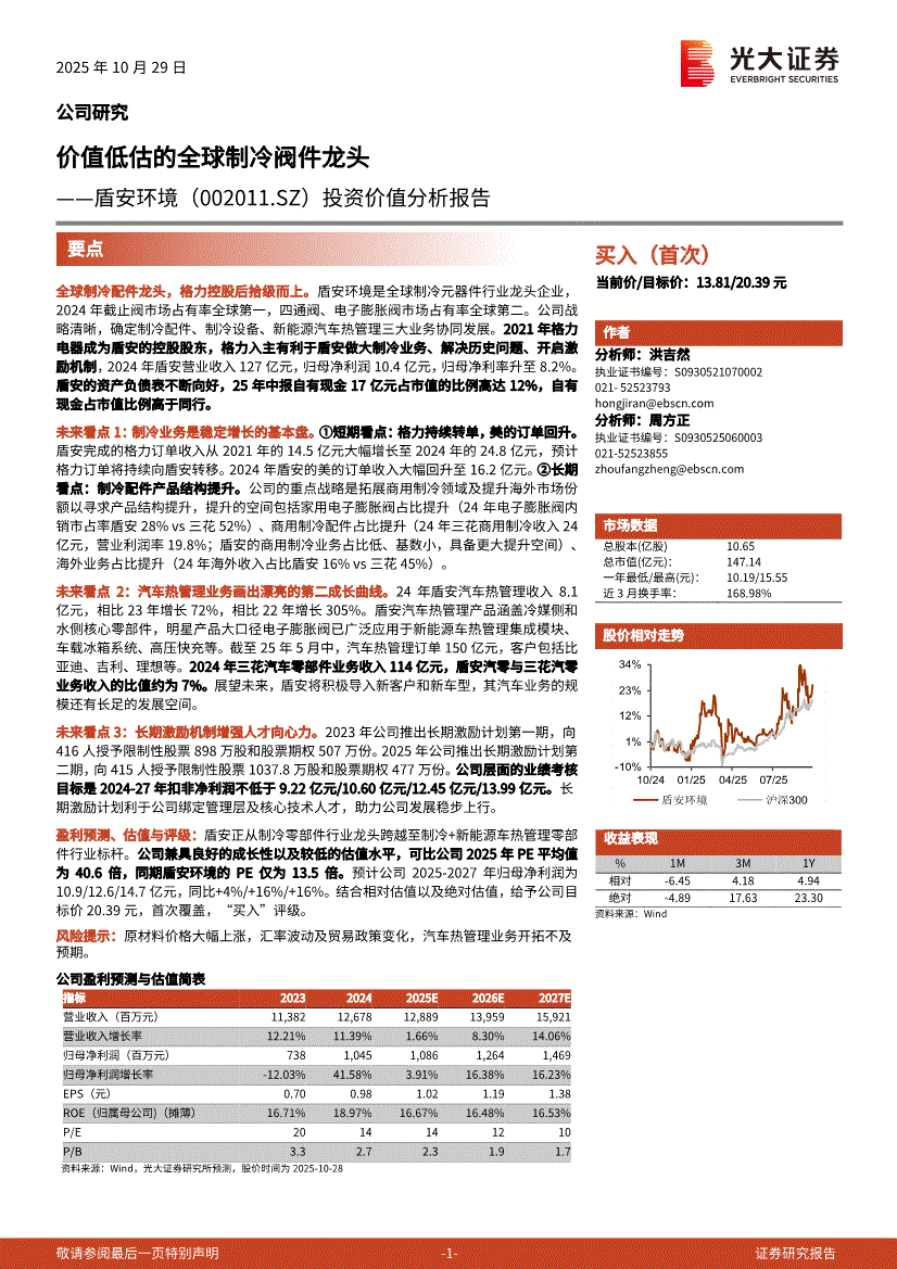 盾安环境:光大证券-盾安环境-002011-投资价值分析报告:价值低估的全球制冷阀件龙头-251029