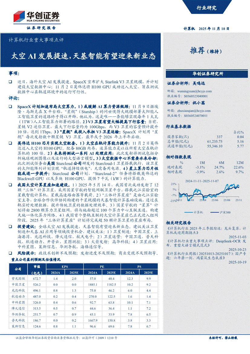 计算机行业:华创证券-计算机行业重大事项点评:太空AI发展提速,天基智能有望迎来新业态-251110