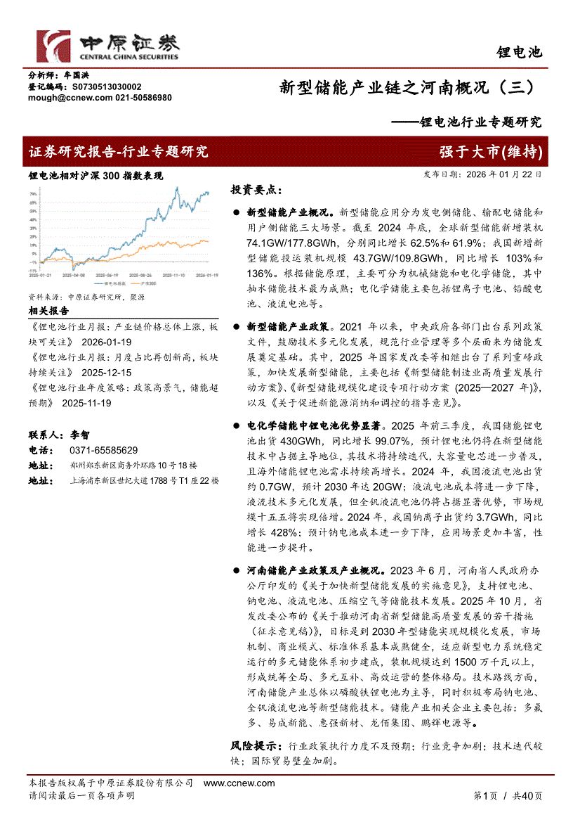 锂电池行业:中原证券-锂电池行业专题研究:新型储能产业链之河南概况(三)-260122